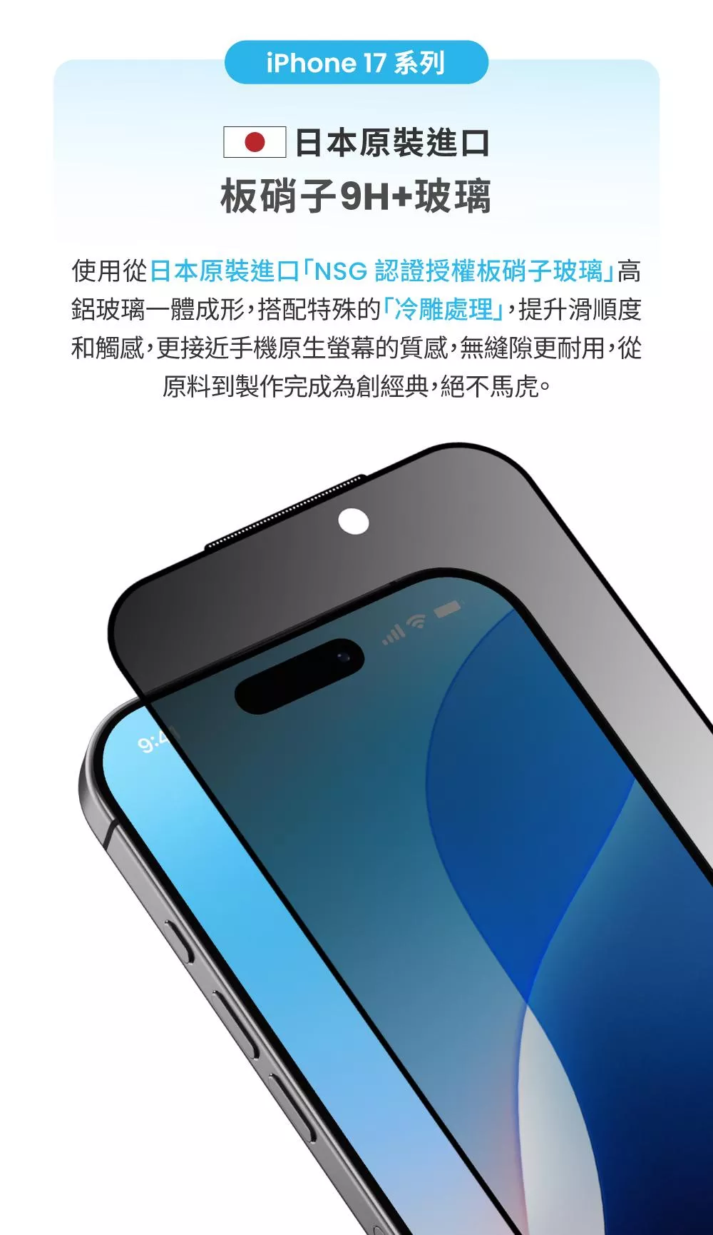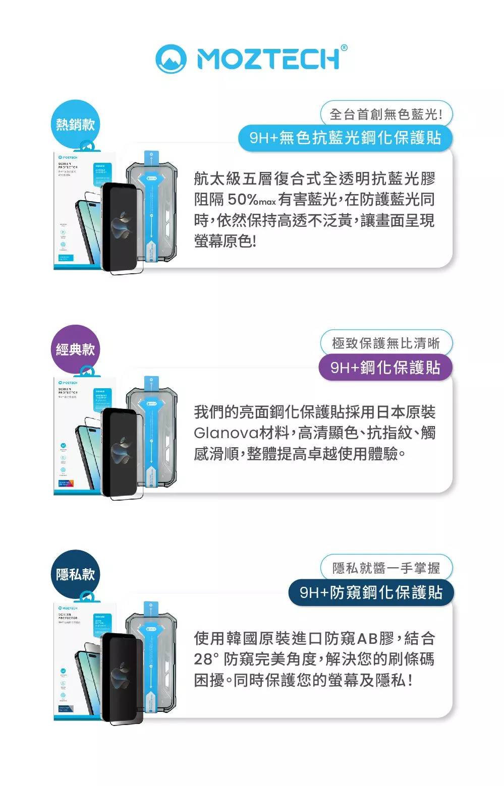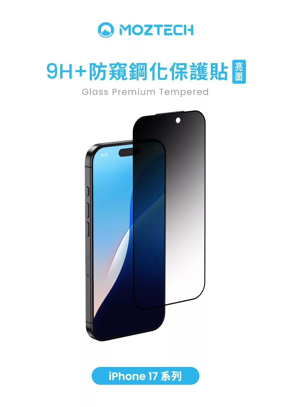 MOZTECH 9H + 28度防窺鋼化保護貼 亮面防窺 獨家專利 秒貼款 適用 iPhone 17 / 17 Air / 17 Pro / 17 Pro Max