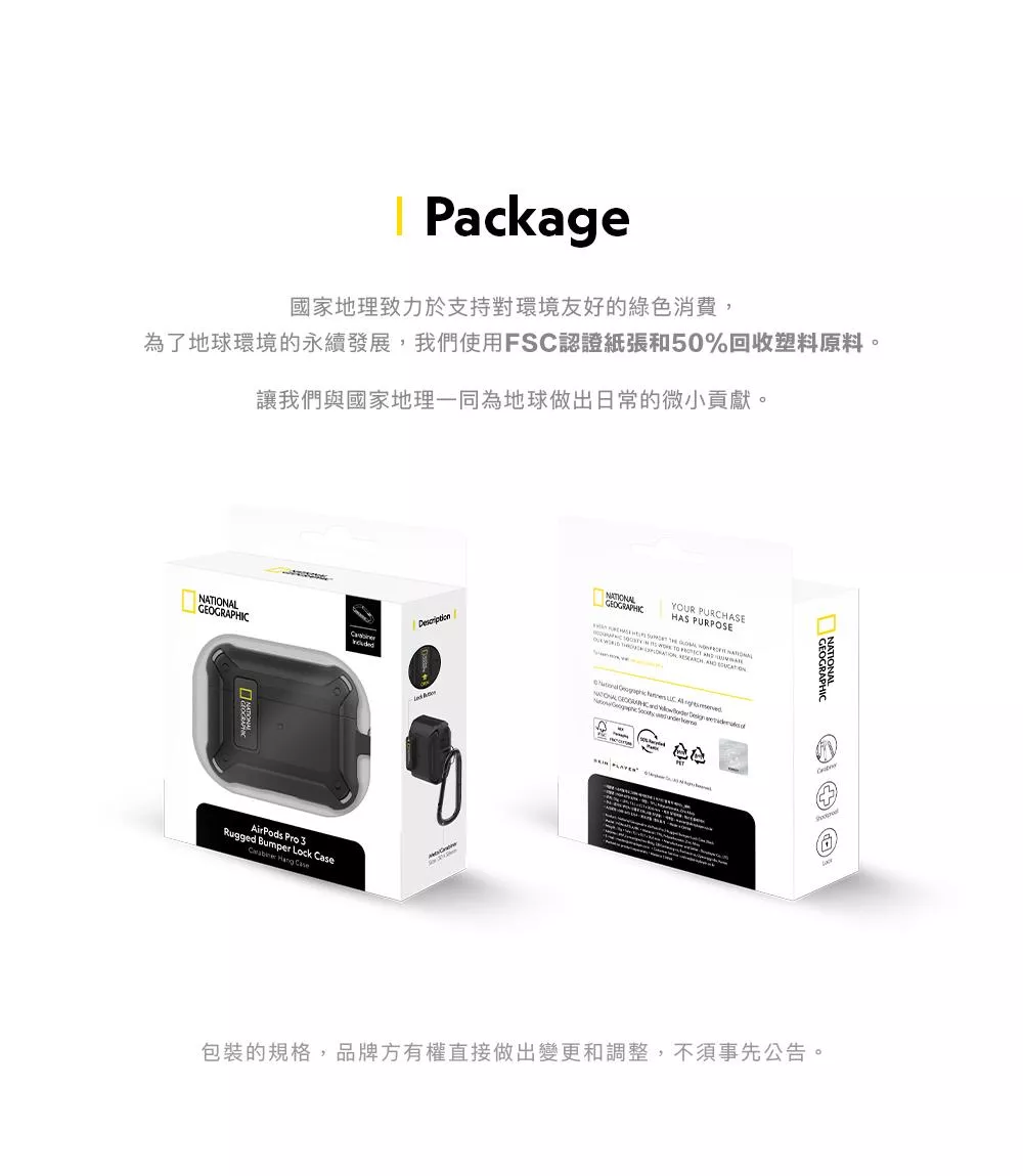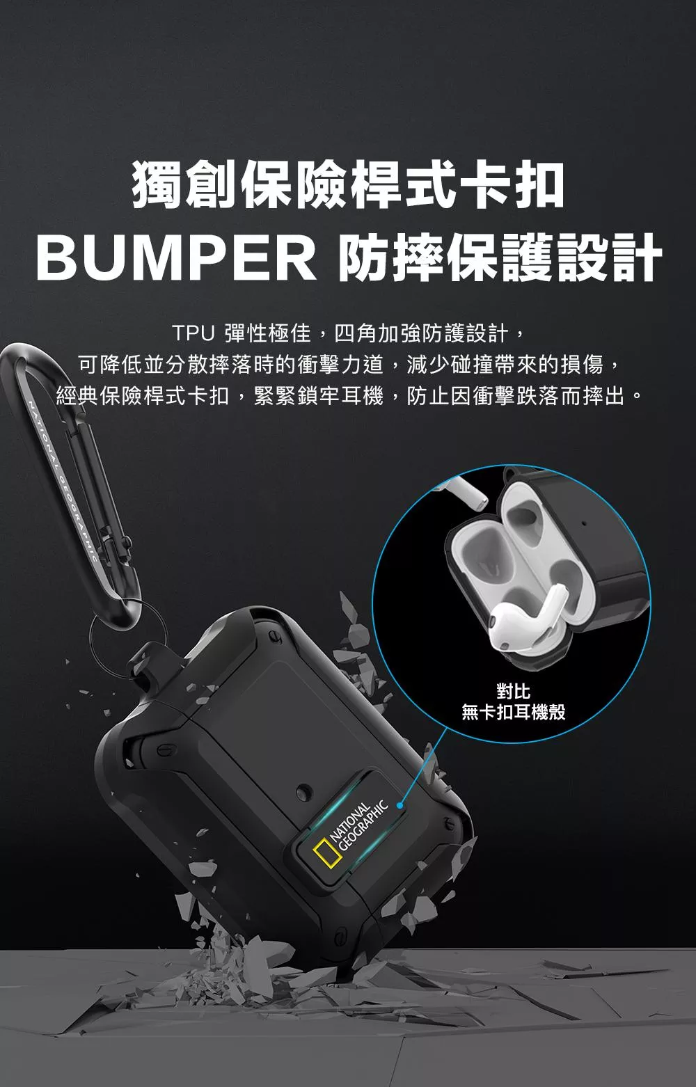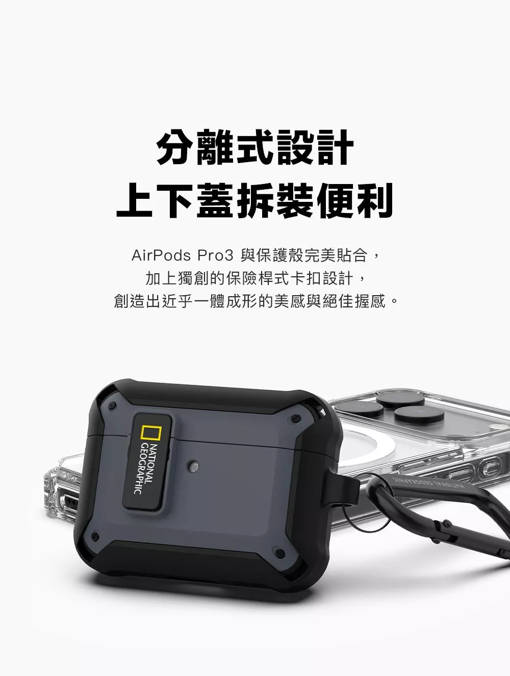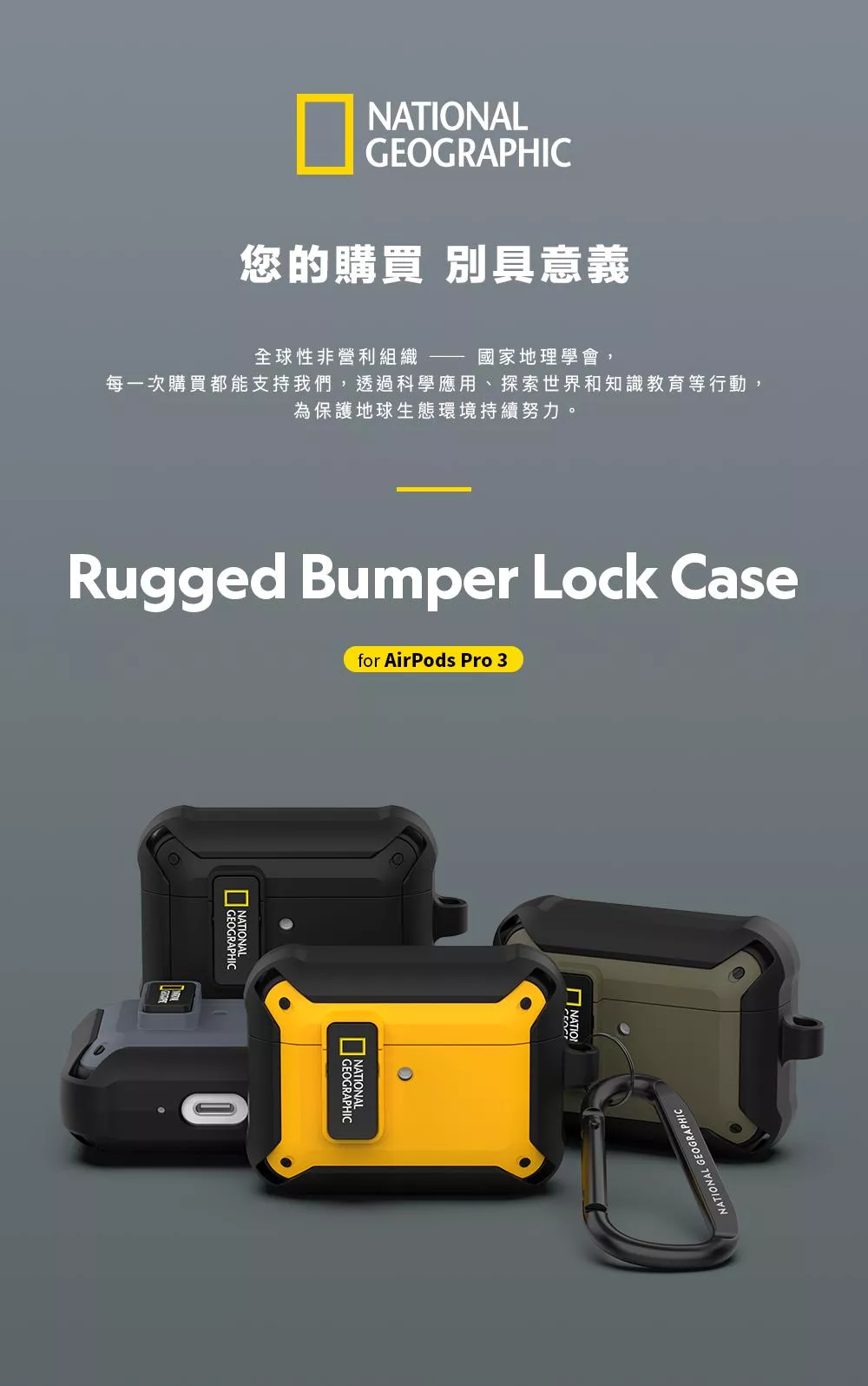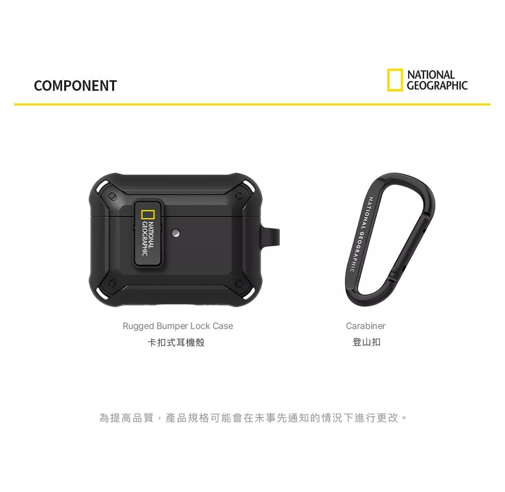 National Geographic 國家地理 Rugged Bumper 卡扣式 耳機保護殼 耳機殼 適用 AirPods Pro 3 - 黑色