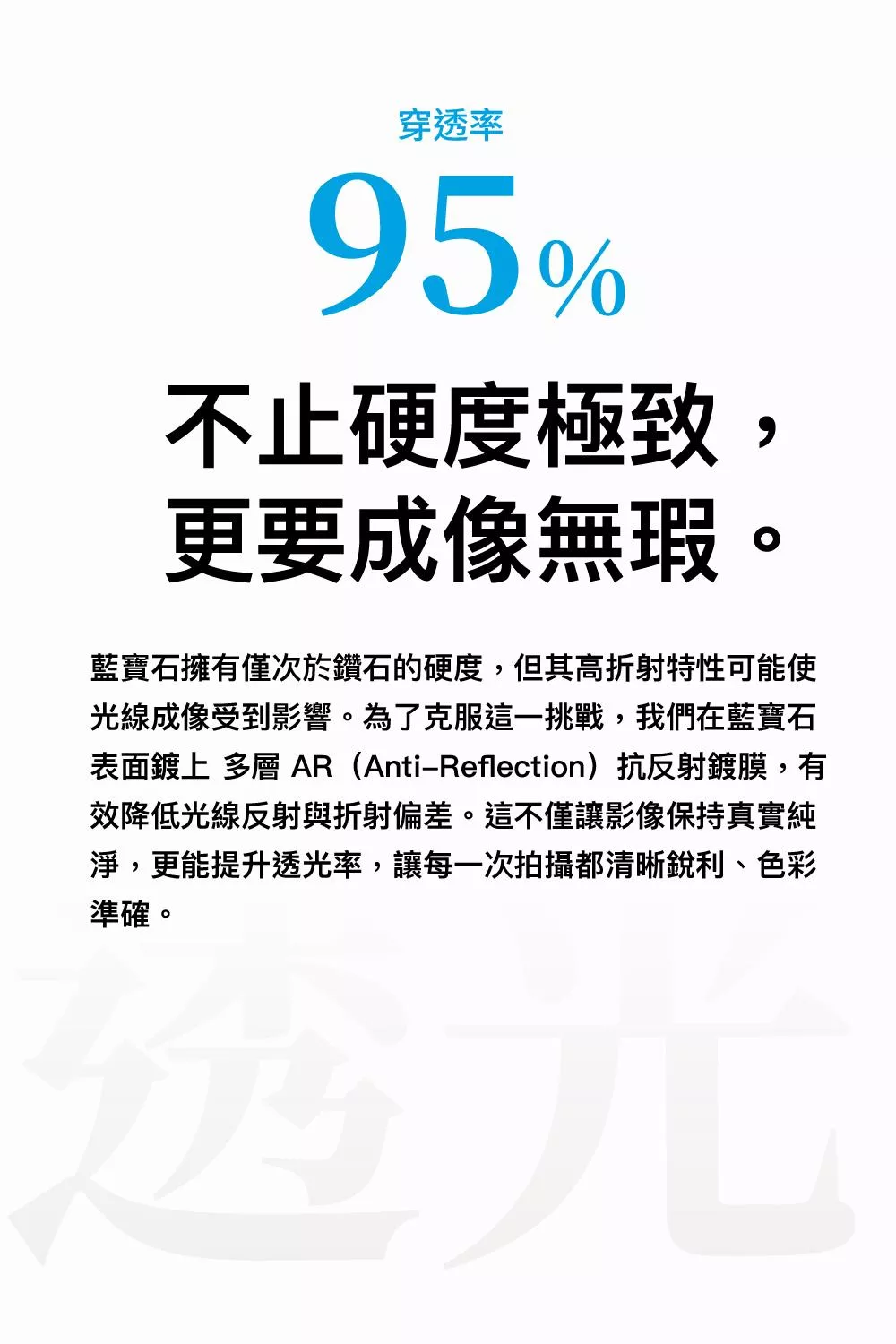✔️表面鍍上多層AR抗反射鍍膜,高達95%透光率,有效減低耀光