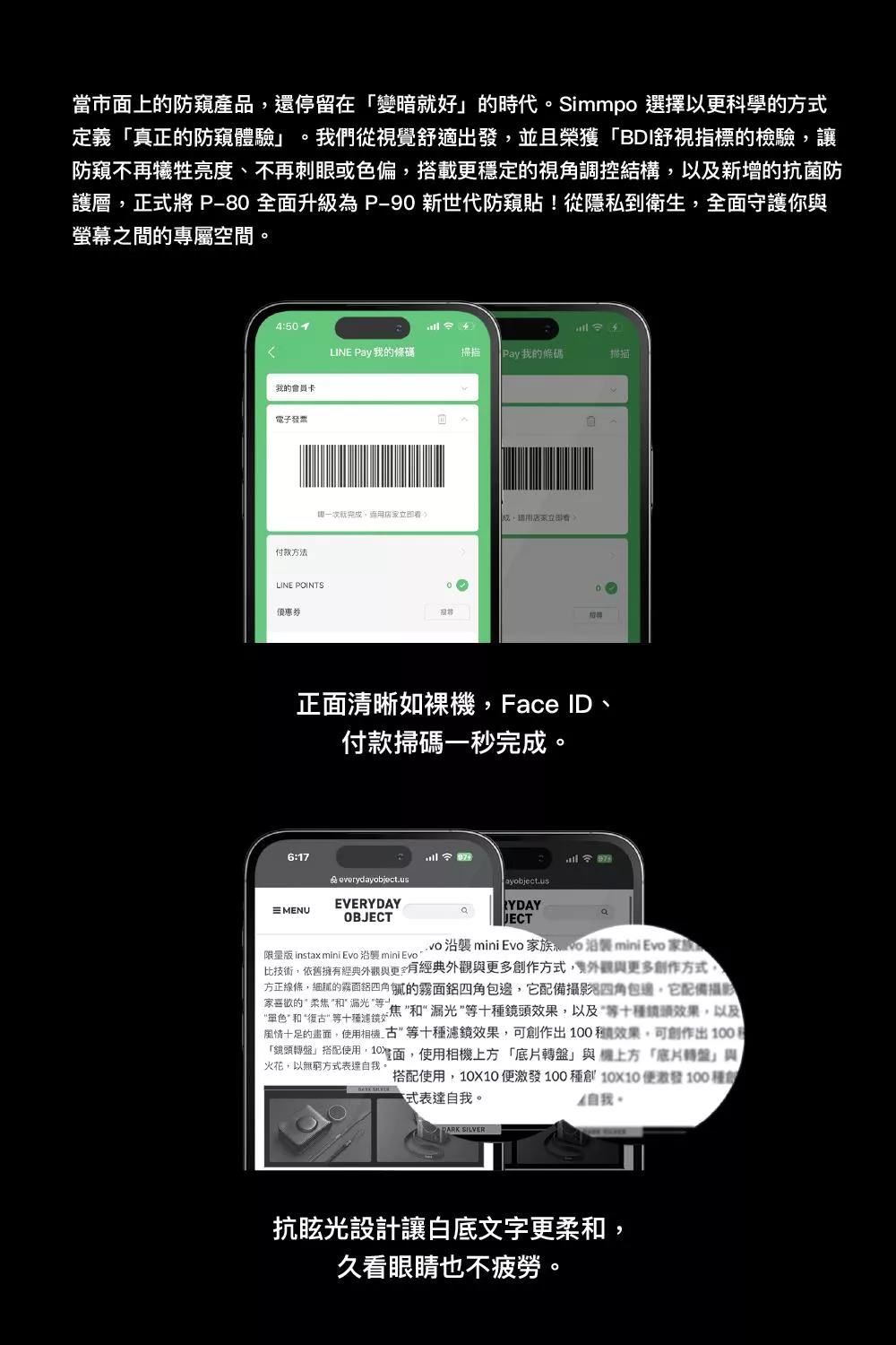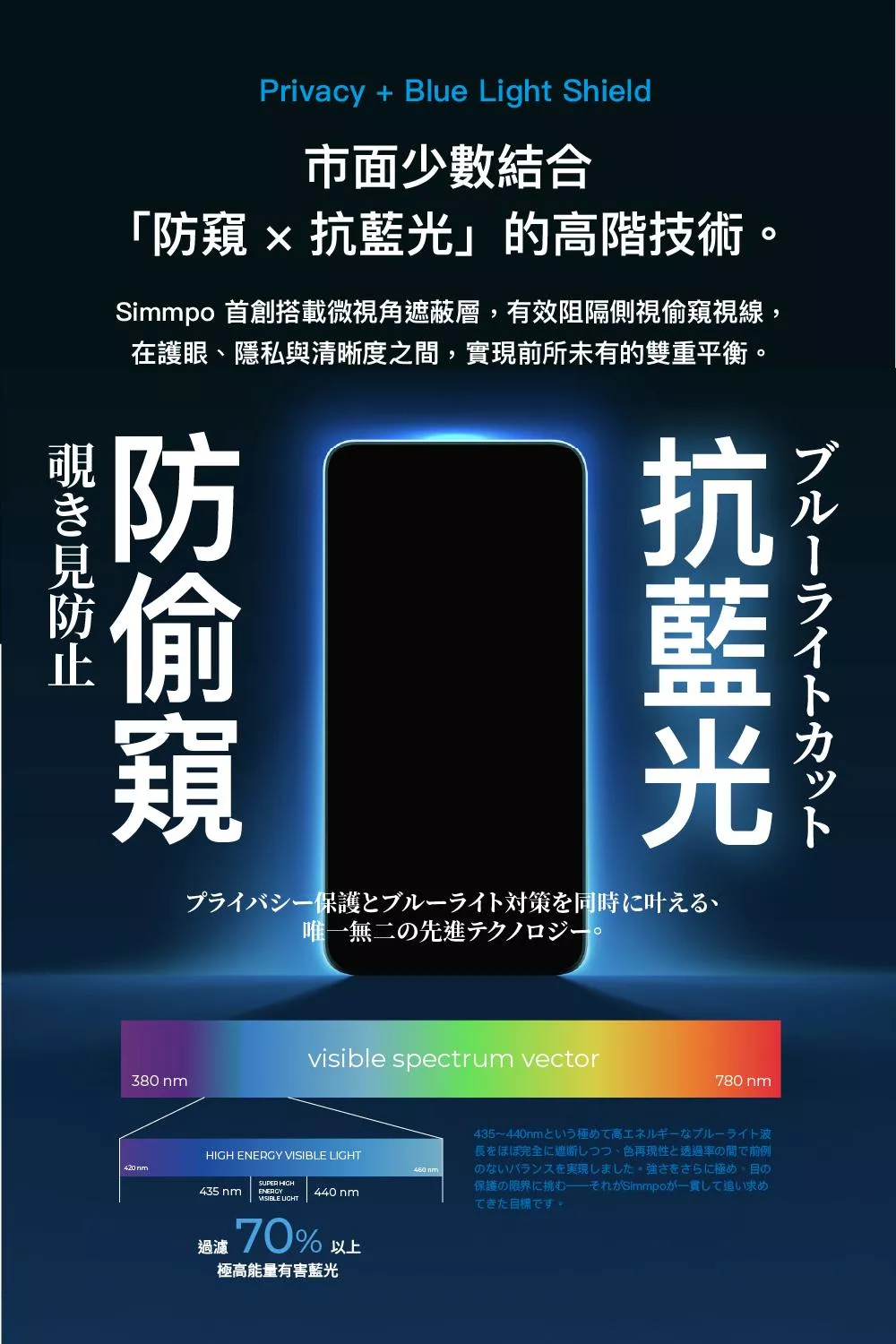 Simmpo 簡單貼 P-90 防窺 抗藍光護眼保護貼 26度防窺玻璃貼 適用 iPhone 16 Pro / 16 Pro Max 附贈對位框+66W快充線