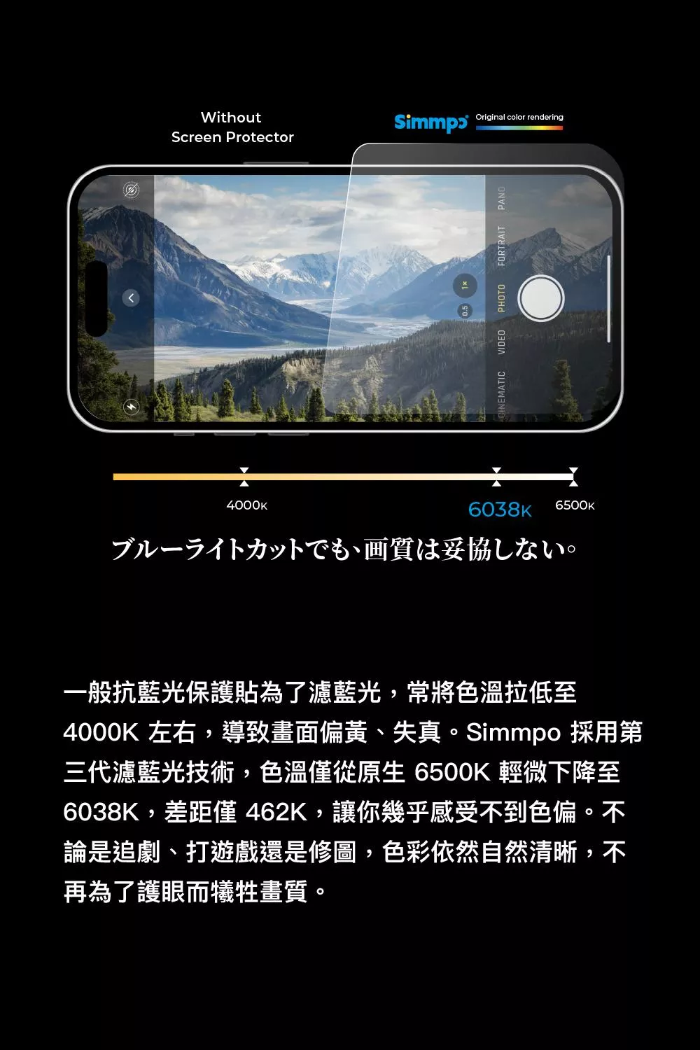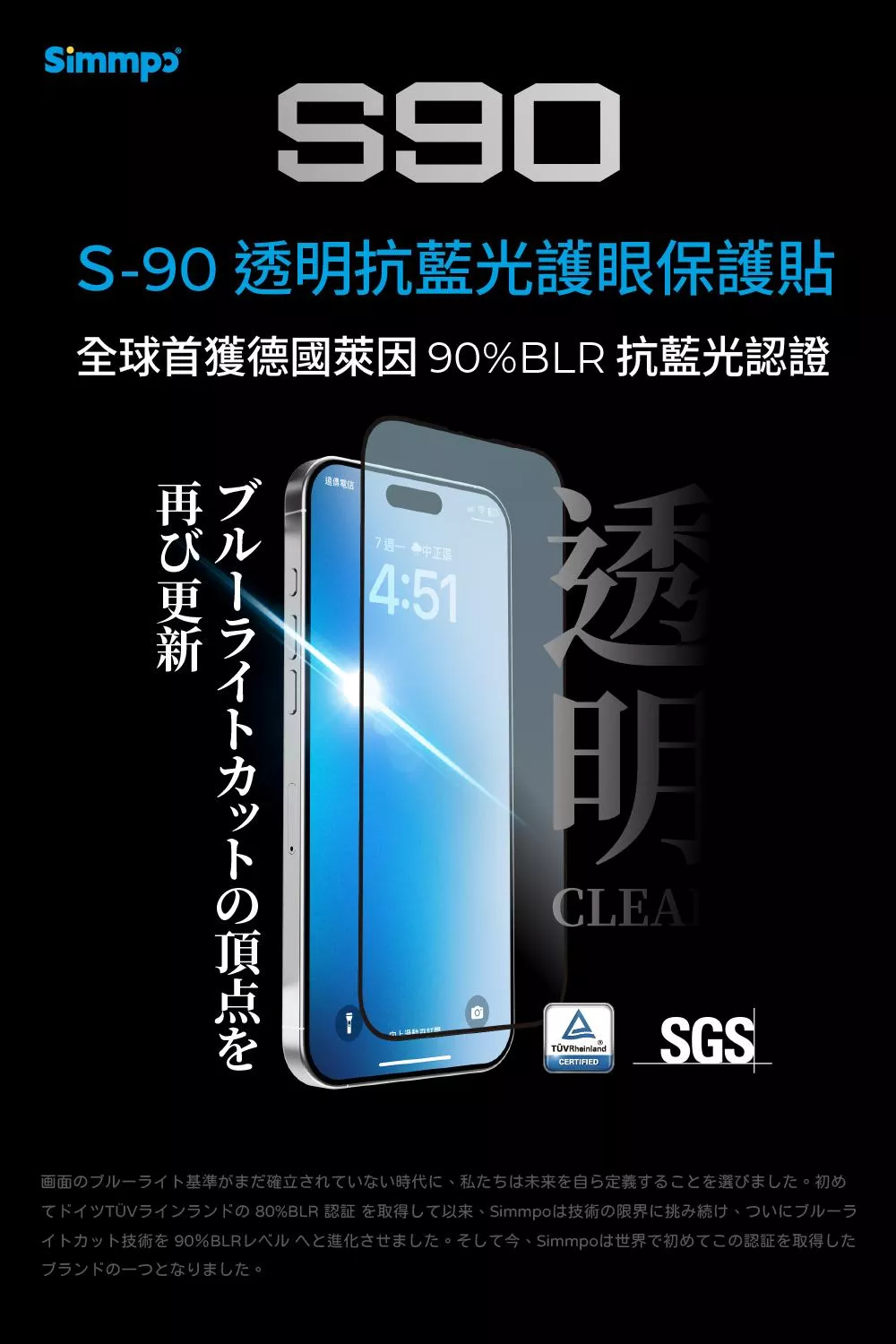 Simmpo 簡單貼 S-90 透明 抗藍光護眼保護貼 藍光玻璃貼 BLR80 適用 iPhone 16 Pro / 16 Pro Max 附贈對位框+66W快充線