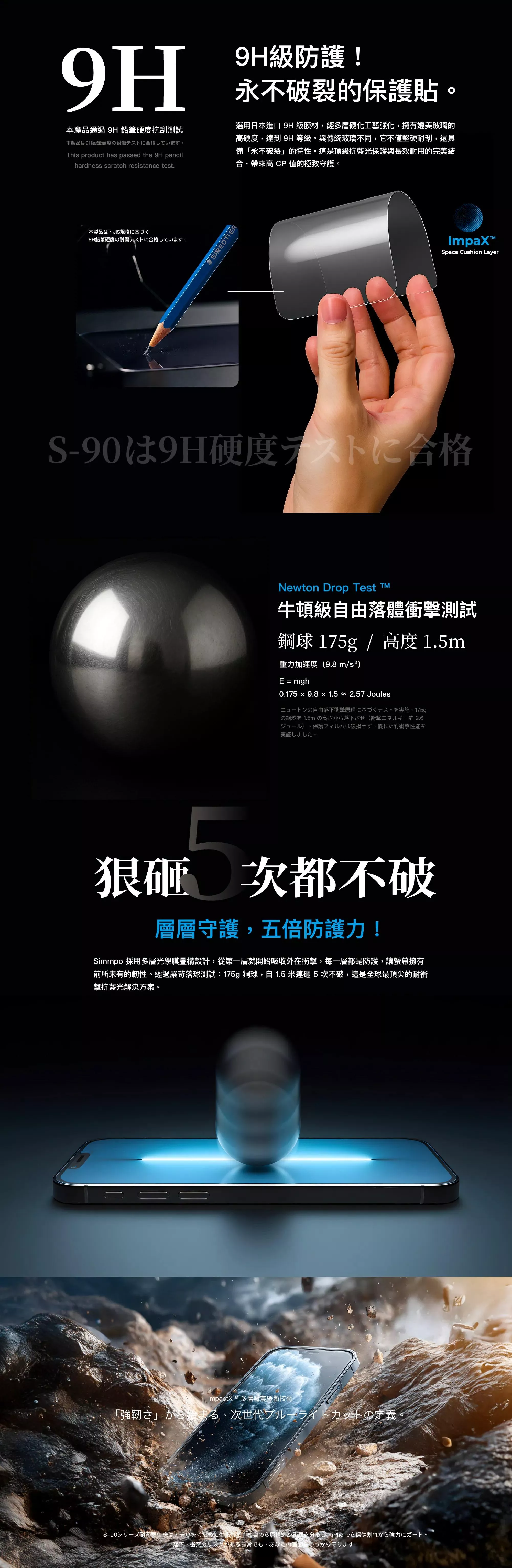 Simmpo 簡單貼 S-90 耐衝擊透明抗藍光保護貼 德國萊因認證 BLR90 適用 iPhone 17 / Air / 17 Pro / 17 Pro Max 附贈對位框
